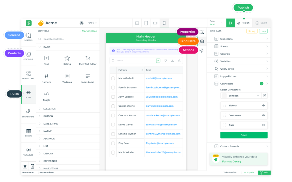 - 可视化生成器使用简单。可重复使用的控件,如图表、表格网格、列表、详细视图、按钮、表单字段和自定义UI控件,在创建完美的用户界面时可以节省更多的时间。