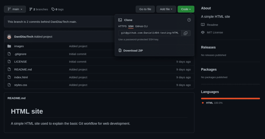 # Linux/macOS ls HTML-site/ # Windows dir HTML-site\ .git images .gitignore index.html LICENSE README.md styles.css