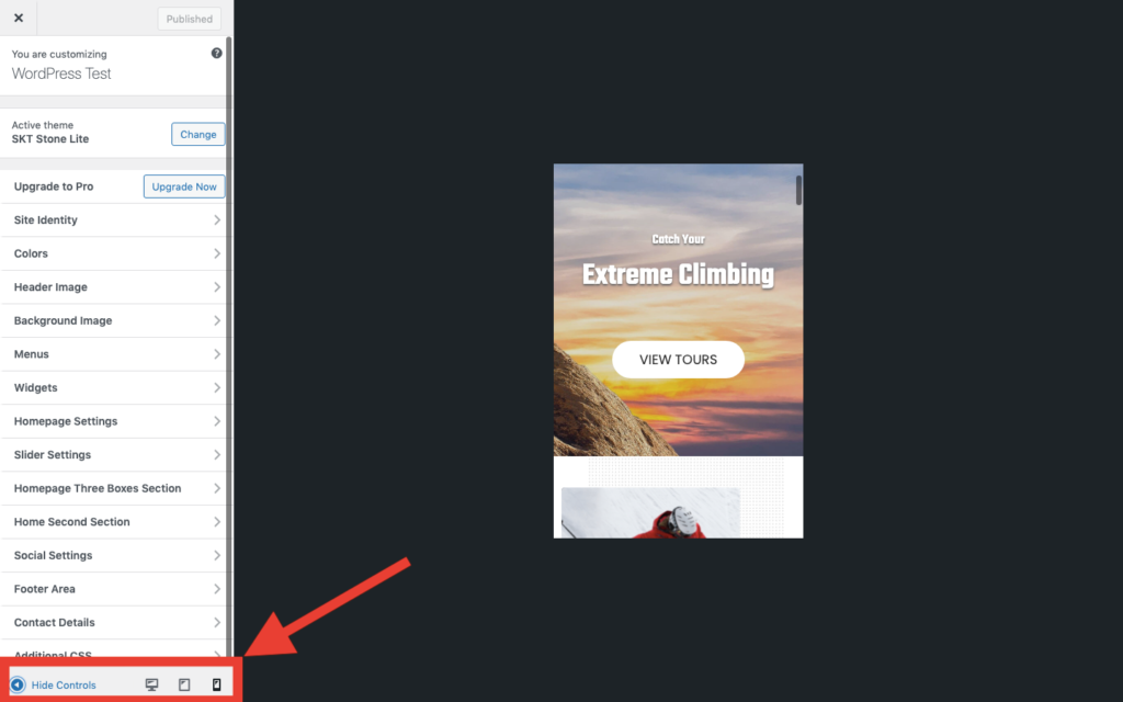 要查看您的网站在不同屏幕尺寸上的显示效果,请使用自定义菜单底部的图标在设备视图之间切换。
