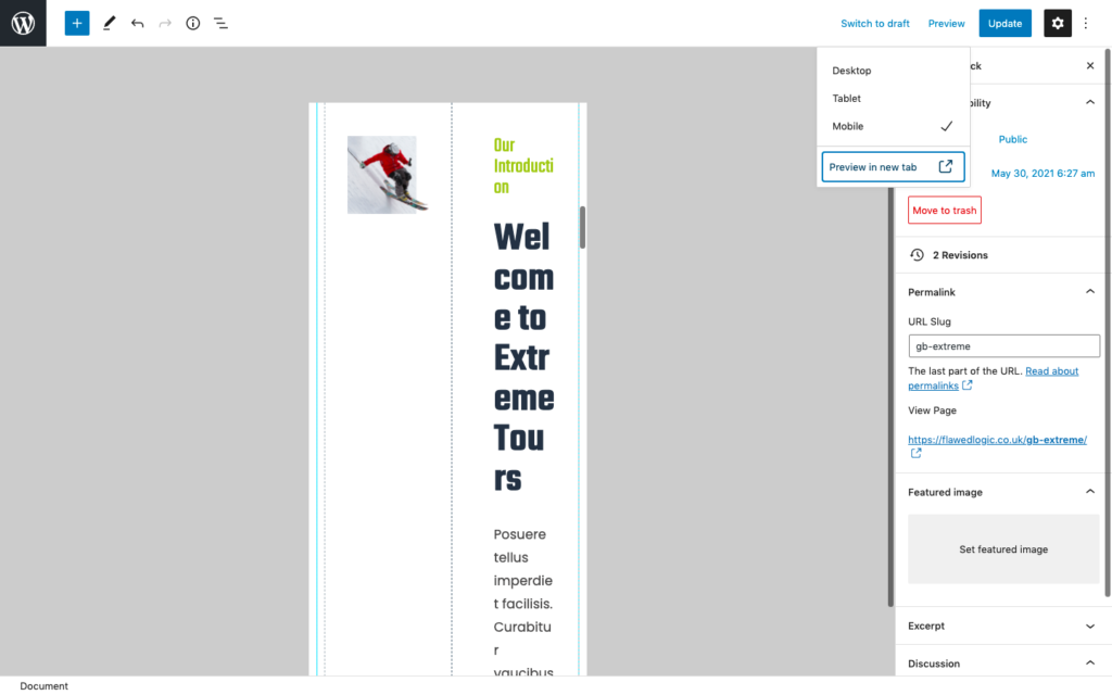 教训:不要相信文章和页面编辑器中的移动预览。公平地说,这是一个相当新的功能,并且仅在2020年年中发布的WordPress 5.5之后才出现。希望未来移动页面预览会有所改进。