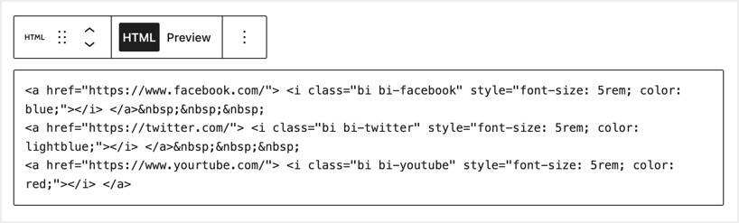 现在您可以将此代码嵌入到您的WordPress网站的自定义HTML中。您可以单击预览以查看图标,也可以发布文章以在实时页面中查看图标。