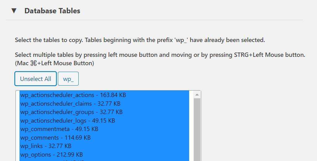 在某些情况下,您可能希望从克隆过程中排除特定文件和数据库表。排除繁重的内容,例如由网络统计插件创建的表格,可以提高克隆过程的速度。