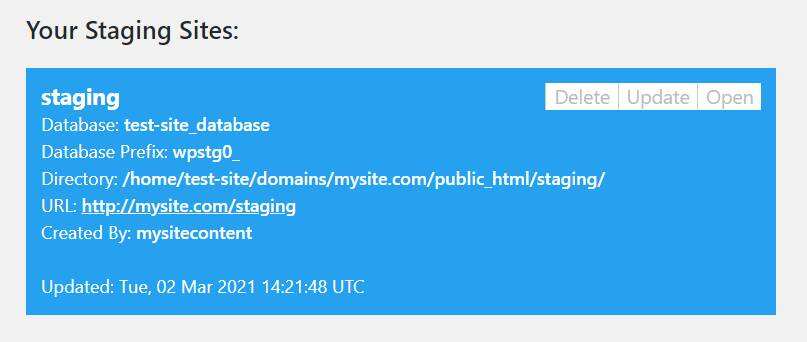 访问预发布站点的另一种方法是从WordPress仪表盘导航到WP-Staging -> Sites。