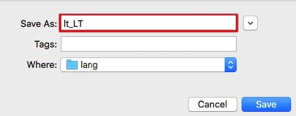翻译完主题后,将文件(lt_LT在本例中)保存在与原始模板相同的目录中: