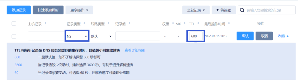 在这种情况下,TTL确定DNS服务器在再次请求信息之前将保留此DNS记录的时间。它是控制DNS传播的因素之一,它决定了DNS更新所需的时间。