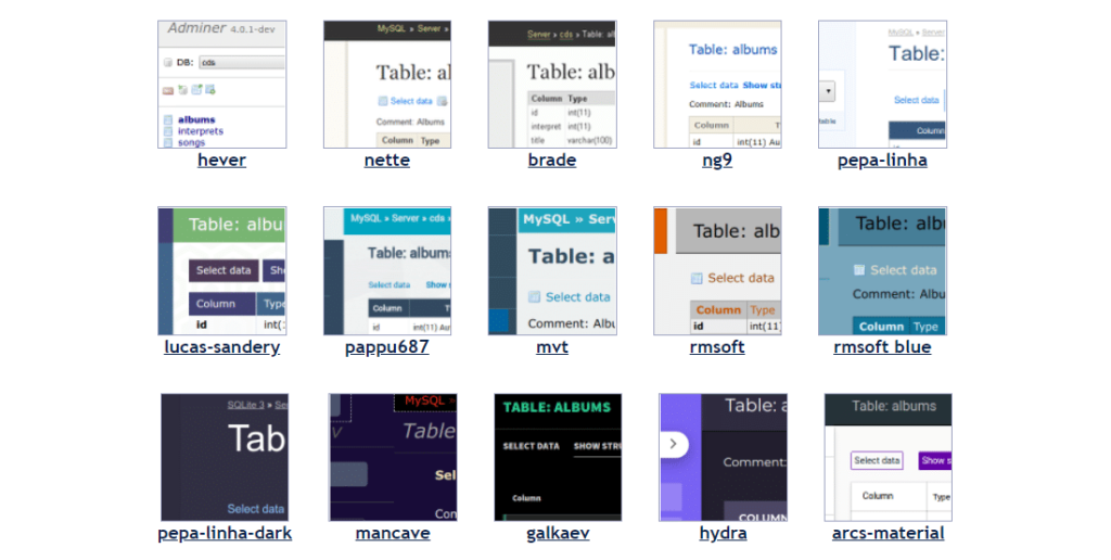 Adminer最酷的功能之一是它的主题功能。官网列出了一些现成的设计,你可以马上使用。