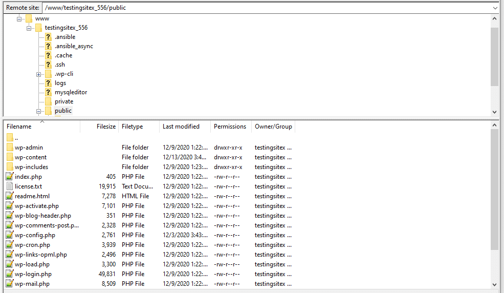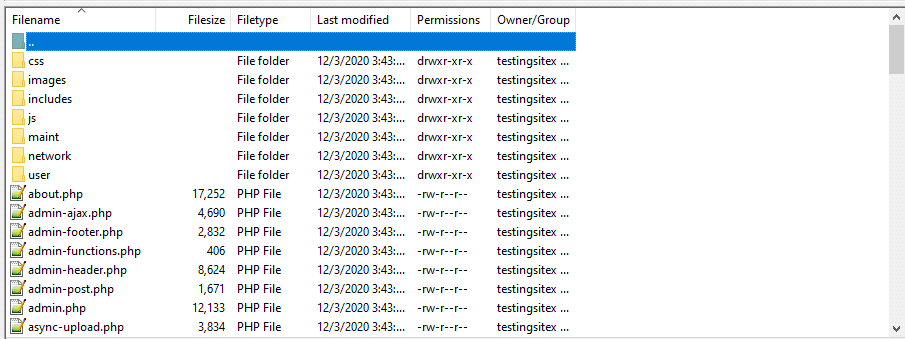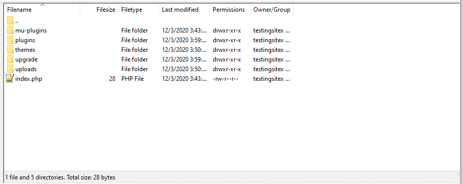 现在您应该会看到一系列文件夹和文件,例如wp-content、wp-admin和wp-login.php文件。