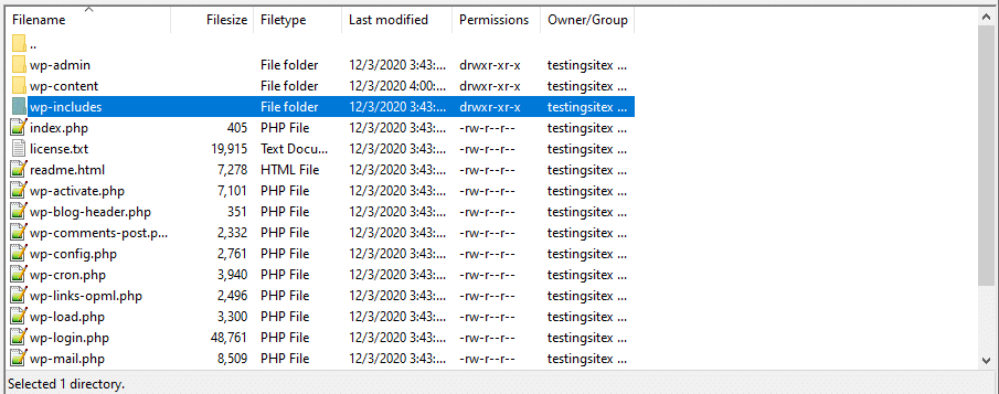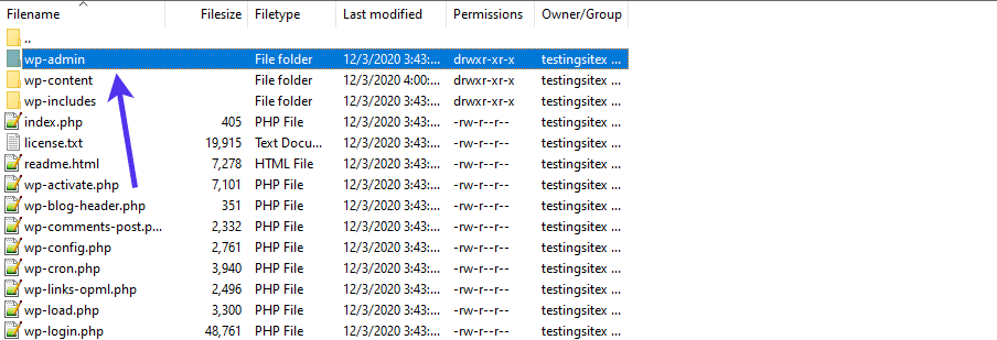 像往常一样,我们会看到像wp-admin和wp-content这样的文件夹,这样可以很容易地识别出您在正确的位置。