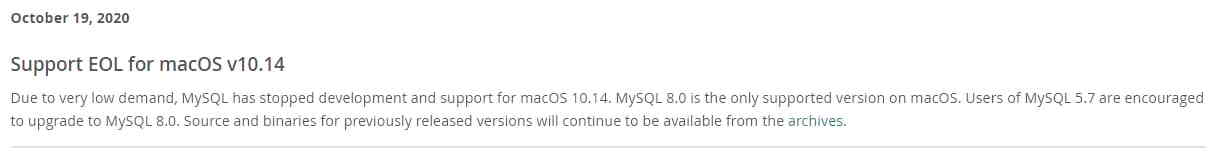 大多数人不升级是因为他们不知道最新的MySQL版本,或者他们不想花时间更新它。此外,5.7还没有被弃用,直到2023年才会被弃用。