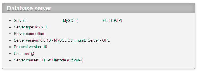 还有另一种直接的方法来检查您的MySQL版本,那就是phpMyAdmin 。该软件也无处不在,并且存在于大多数服务器上,因此您可以很好地找到您的MySQL版本。