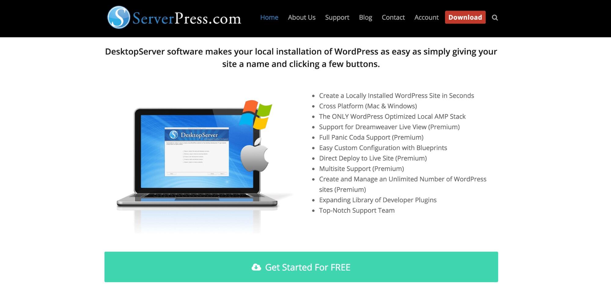 有很多方法可以创建本地环境,但本次示例我们将使用DesktopServer。这是一种免费安装本地版本WordPress的快速、简单的方法,并且与Mac和Windows兼容。要开始使用,请选择DesktopServer的免费版本,完成注册过程,然后下载安装程序。