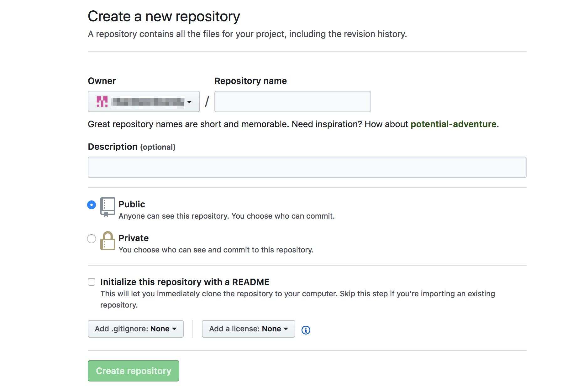 您终于准备好为您的项目创建GitHub存储库。这是一个相当简单的过程,只需要您配置一些设置。让我们从顶部开始。
