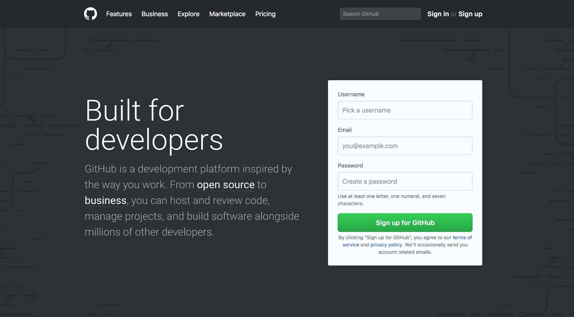 此时,您需要创建一个GitHub帐户。首先访问GitHub主页并填写注册表。