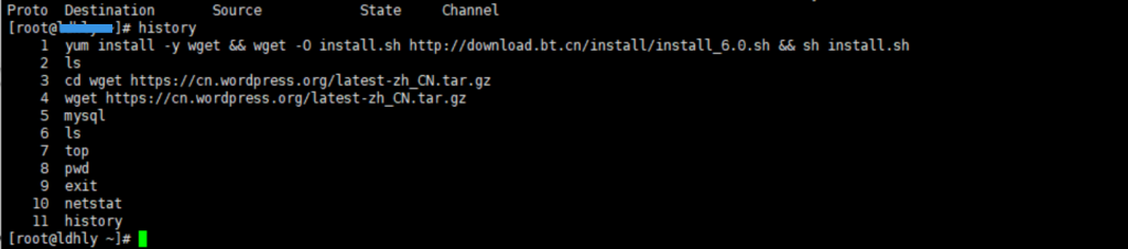 如果您不太确定最近使用SSH做了哪些命令行操作,并且想要重复或撤消某些操作,可以使用history命令行输出最近使用的50条命令行列表。