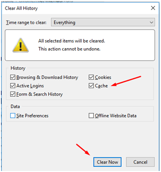 - 如果需要,选择Cache/缓存(以及其他相关选项),然后单击Clear Now(立即清除)按钮。