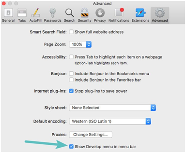 - 选择“‘Show Develop menu in menu bar’/在菜单栏中显示开发菜单”的选项