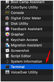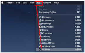 - 点击MAC机器的顶部导航栏中Go(前往)下的Utilities(实用工具)