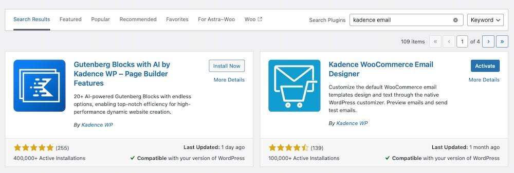 安装 Kadence WooCommerce Email Designer 插件