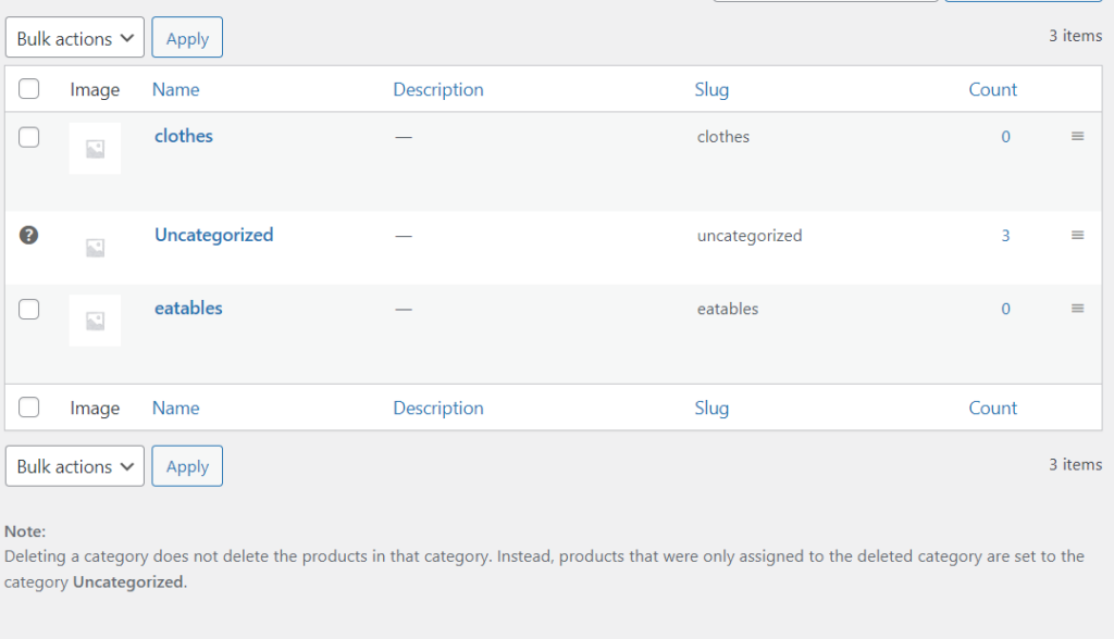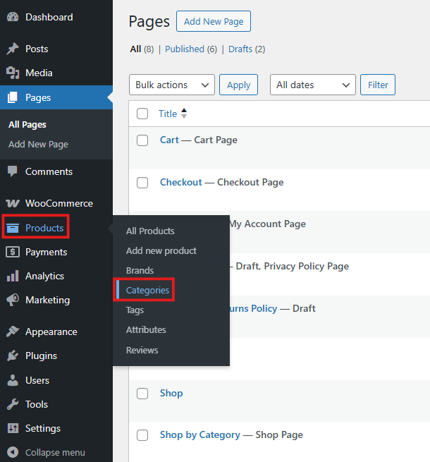 - 进入 WordPress 仪表板中的“产品”>“类别”。
