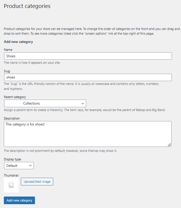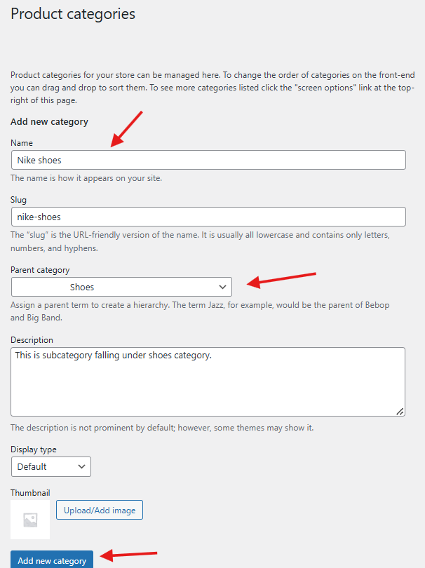 例如,如果您是卖鞋的,您可以创建一个名为“Shoes”的父类别,以及 Running Shoes 和 Formal Shoes 等子类别。