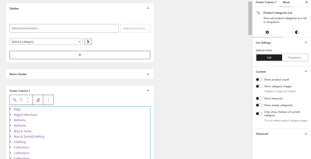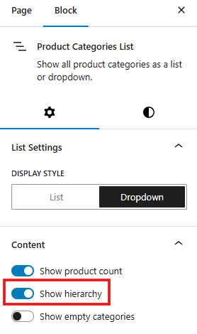 对于使用Gutenberg 区块编辑器的用户,WooCommerce 提供了一种无需短代码的拖放方式来排列类别和子类别。