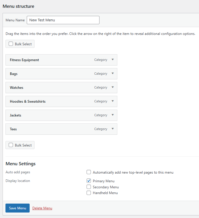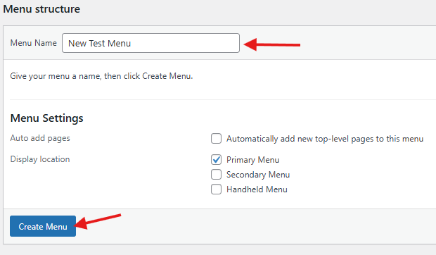 - 创建一个新菜单。我将其命名为“New Test Menu”。