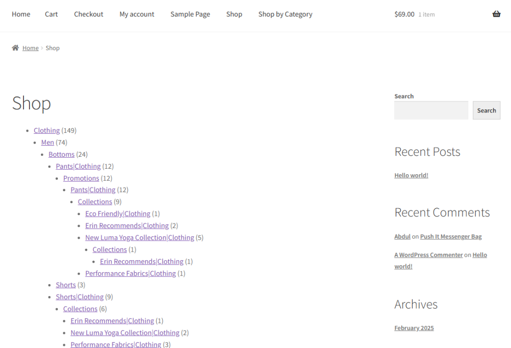 商店页面将只显示父类别,而不是杂乱无章的产品列表。当用户点击一个类别时,会看到其子类别和产品整齐地显示出来。