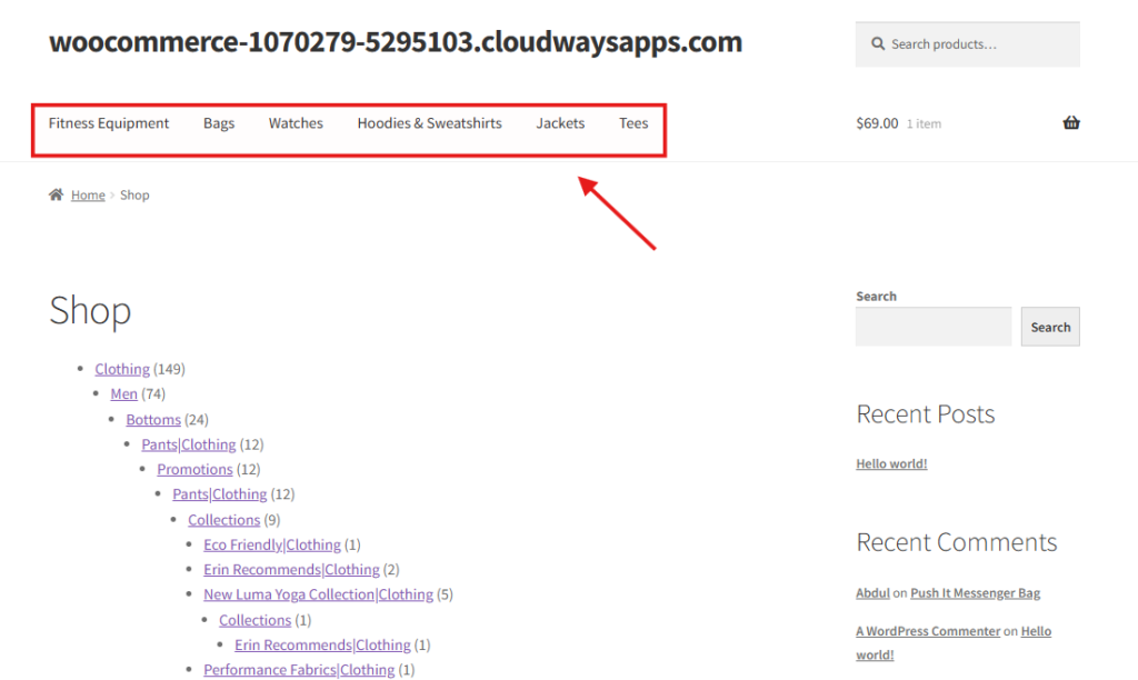 现在,您的产品类别将显示在菜单中,方便客户找到他们想要的产品。