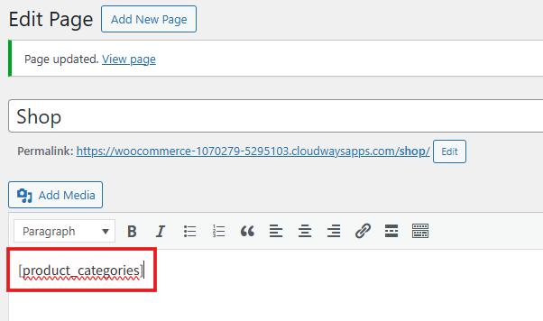 - 将简码粘贴到您希望类别或产品出现的位置。我将以这个简码为例:[product_categories]