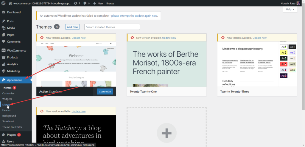 - 进入 WordPress 面板中的“外观”>“菜单 ”。
