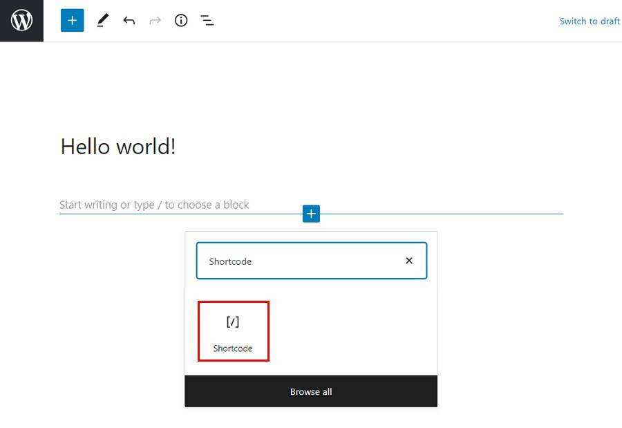 有了Gutenberg编辑器,添加短代码很容易。只需按下加号添加一个新的块,在搜索栏中输入Shortcode,并选择短码区块。