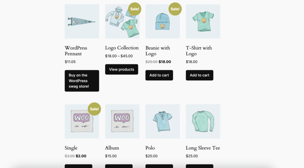 [products] 简码是最通用的 WooCommerce 简码之一。它允许您根据各种条件显示产品列表。