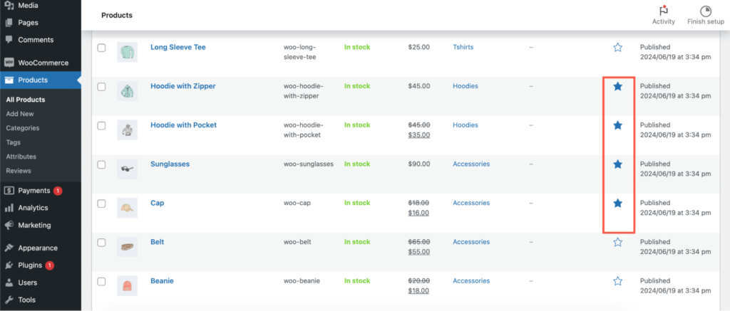 - Featured:显示被标记为特色的产品