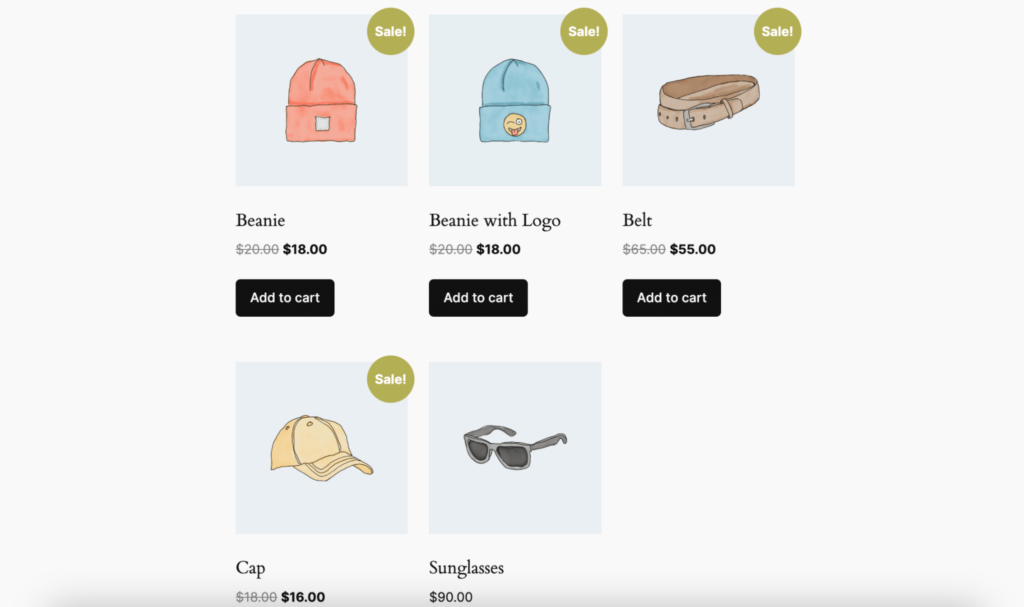 例如,如果您在[products s]短代码中添加on_sale=”true”,那么显示的产品将是正在销售的产品。