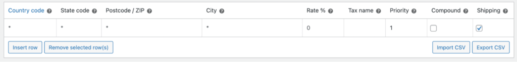 要添加新税率,请单击 Insert row 按钮并填写相关字段。