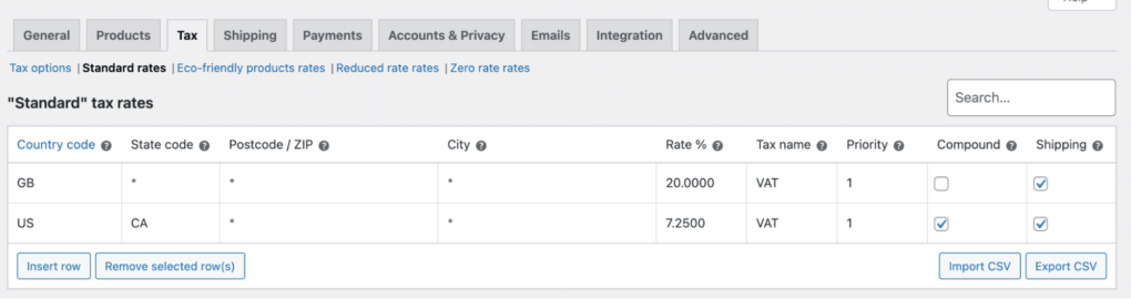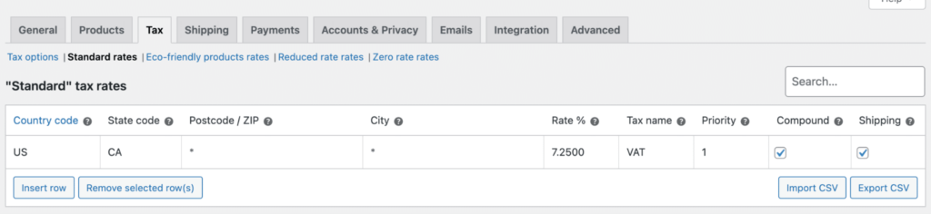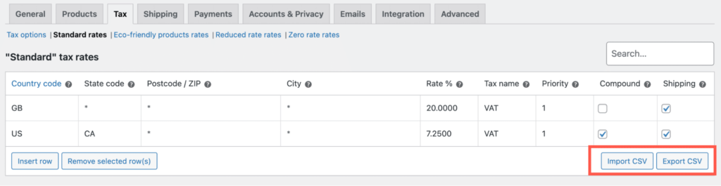 您还可以导出 CSV。这样,您就有了一份所有税务详细信息的备份。如果您想在其他网站上使用相同的税率,可以导入 CSV 文件,而不用手动输入所有信息。