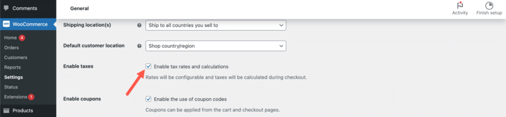 步骤 1:启用 WooCommerce 税收