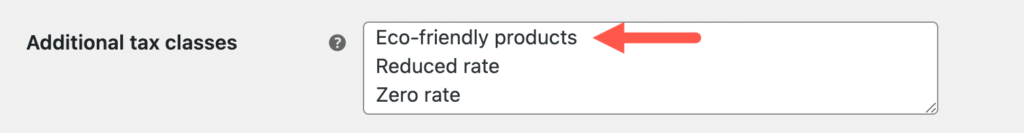 此选项允许您创建和管理默认类别之外的不同税金类别。在文本字段中,输入新税种的名称,每行一个。例如,您可以添加 Luxury goods 或 Eco-friendly products 等类别。