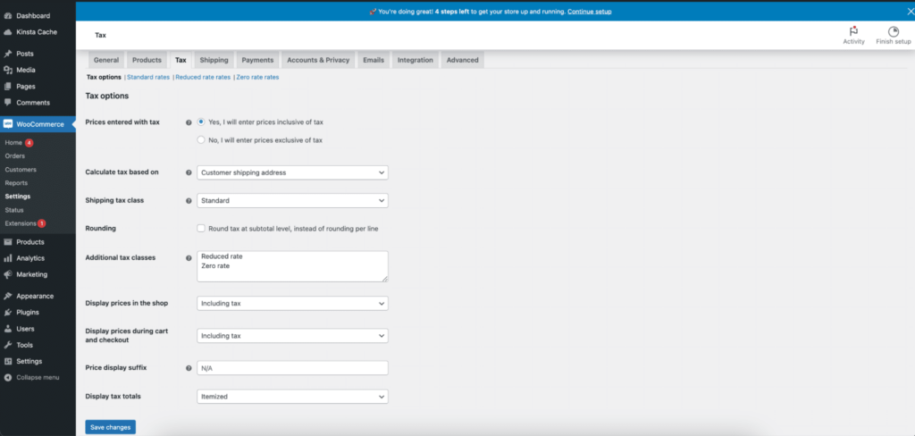 了解了正确的税率后,本指南将帮助您使用 WooCommerce 的原生功能,通过四个步骤为您的网店手动添加销售税计算。