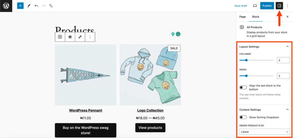 产品网格区块是一种多功能工具,可在 WordPress 网站上以有条理的网格格式展示您商店的产品。以下是添加和自定义产品网格区块的方法: