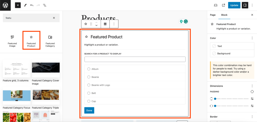 在 WooCommerce 中使用产品网格区块