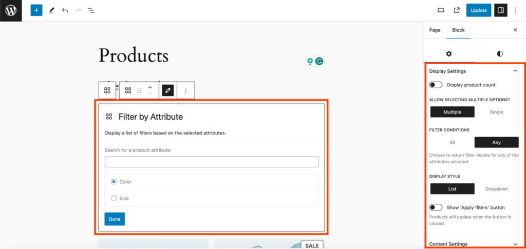 在 WooCommerce 中使用筛选区块