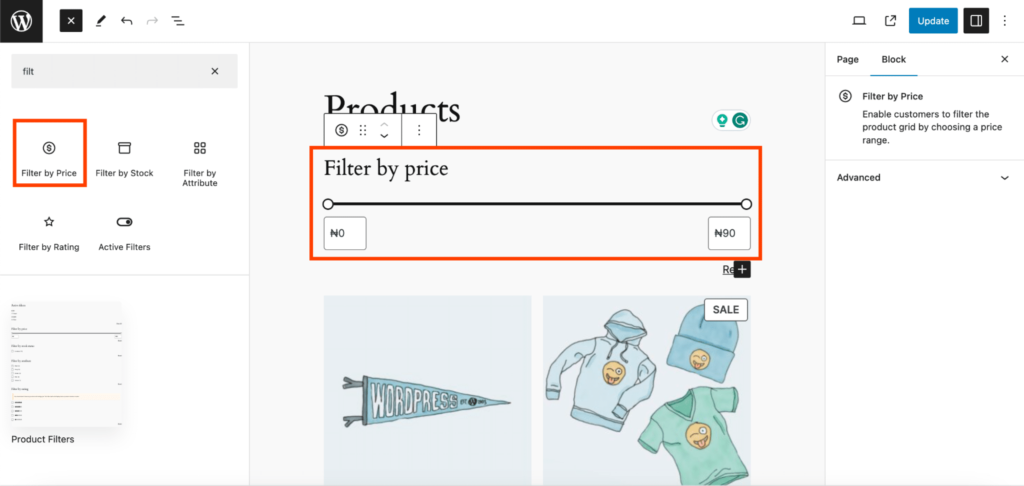 添加 “Filter by Price” 区块