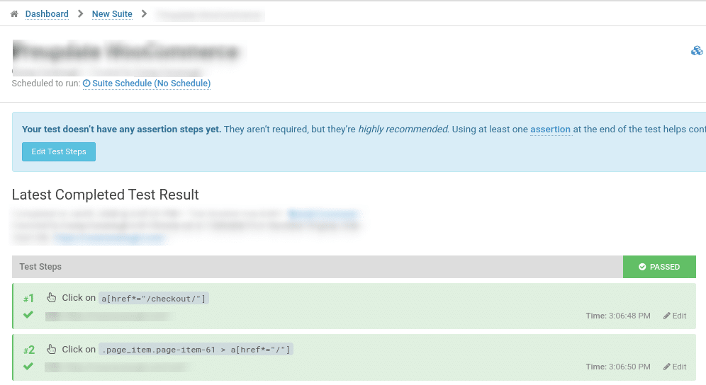 接下来,使用 Ghost Inspector 或 Usetrace(或您选择的端到端测试工具)再运行一次测试,以确保您的结账流程处于正常工作状态。您还可以对网站上的任何其他功能(如联系表单)进行手动或自动检查。