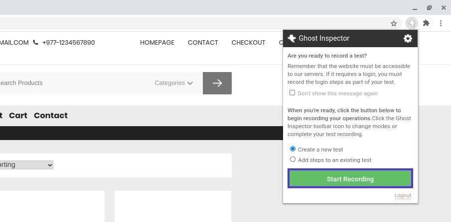 刷新浏览器。准备好运行测试后,访问你的 WooCommerce 网站(确保已注销),然后点击浏览器扩展。