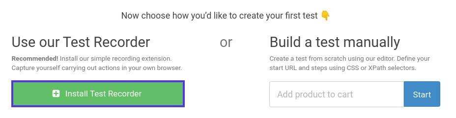 您将跳转到欢迎页面。在页面底部,点击 “Install Test Recorder” 按钮: