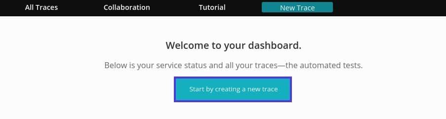 要开始使用,请访问 Usetrace 网站并单击 “Sign Up and Start Testing Now“。创建账户后,您将被重定向到 Usetrace 面板。选择 “Start by creating a new trace“: