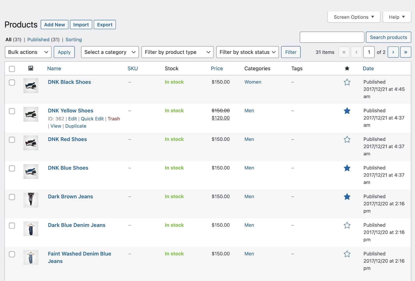 在 WordPress 中,您的产品列表始终位于 Products > All Products 下。