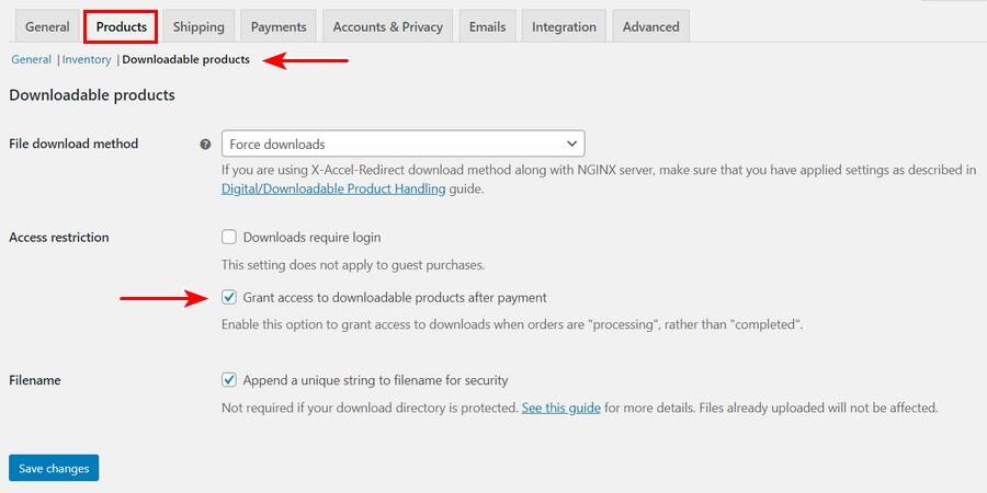 WooCommerce支持销售数字产品或下载,因为它有一个内置的选项来授予可下载产品的权限。