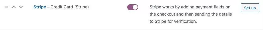 点击中间的按钮,启用Stripe Credit Card选项,然后点击面板右侧的Set up。